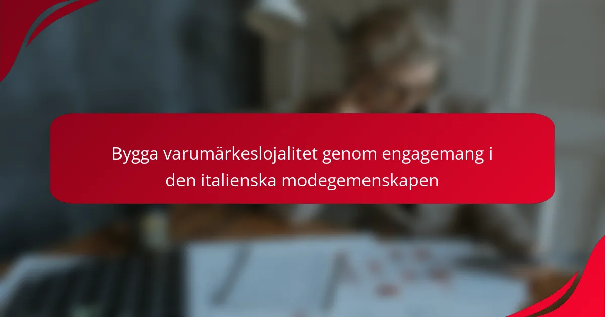 Att bygga varumärkeslojalitet inom den italienska modeindustrin beror på effektiva strategier för samhällsengagemang som resonerar med publiken. Genom att använda sociala medier, anordna evenemang och samarbeta med influencers kan varumärken skapa personliga upplevelser som främjar känslomässiga kopplingar. Anmärkningsvärda varumärken som Gucci, Prada och Armani exemplifierar hur innovativa kampanjer och hållbara metoder kan öka kundlojalitet och interaktion.